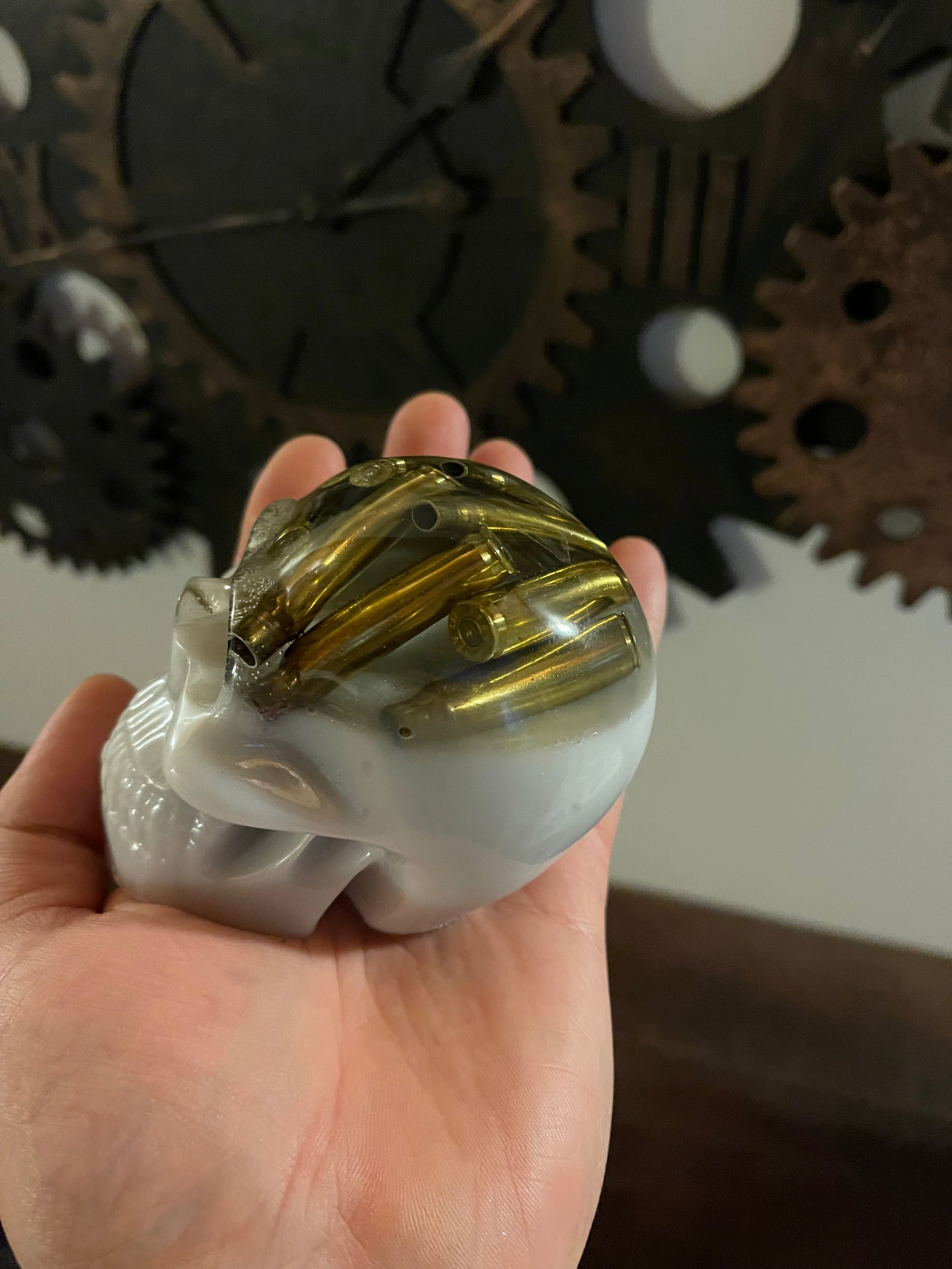 Je vous propose des crânes translucide avec a l’intérieur des étuis / douilles de cartouche de 5.56 ou 223